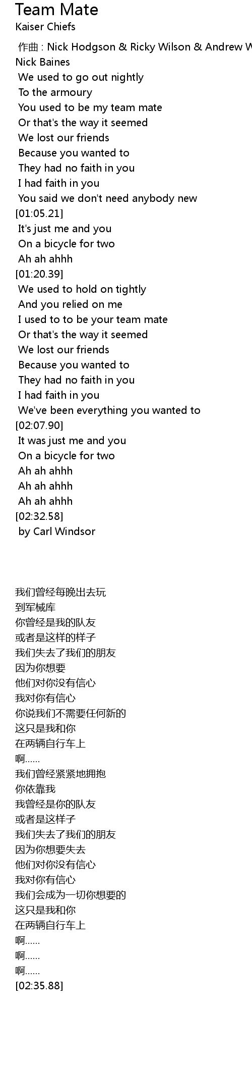 | [00:00.00] | zuò qǔ : Nick Hodgson Ricky Wilson Andrew White Simon Rix Nick Baines |