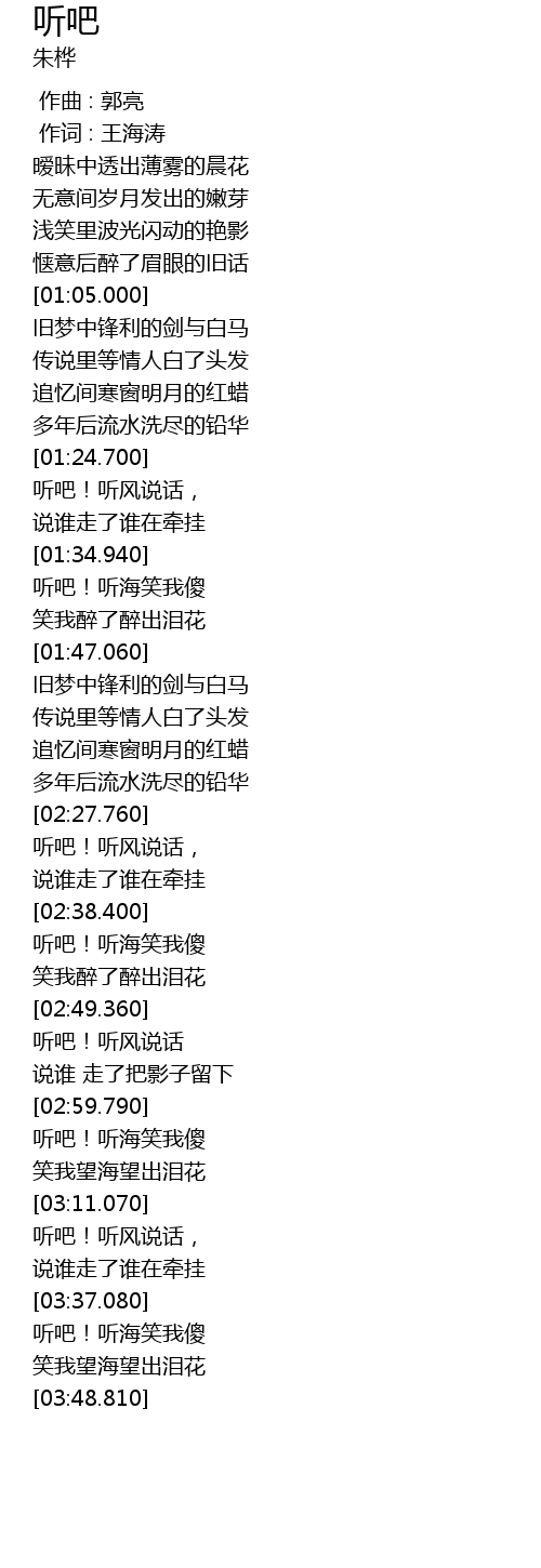 | [02:28.360] | ting ba! ting feng shuo hua, |