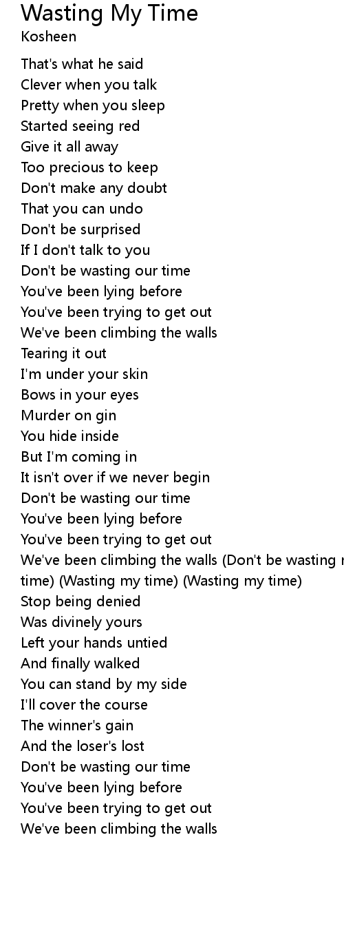 | We've been climbing the walls (Don't be wasting my time) (Don't be wasting my time) (Wasting my time) (Wasting my time) | |
