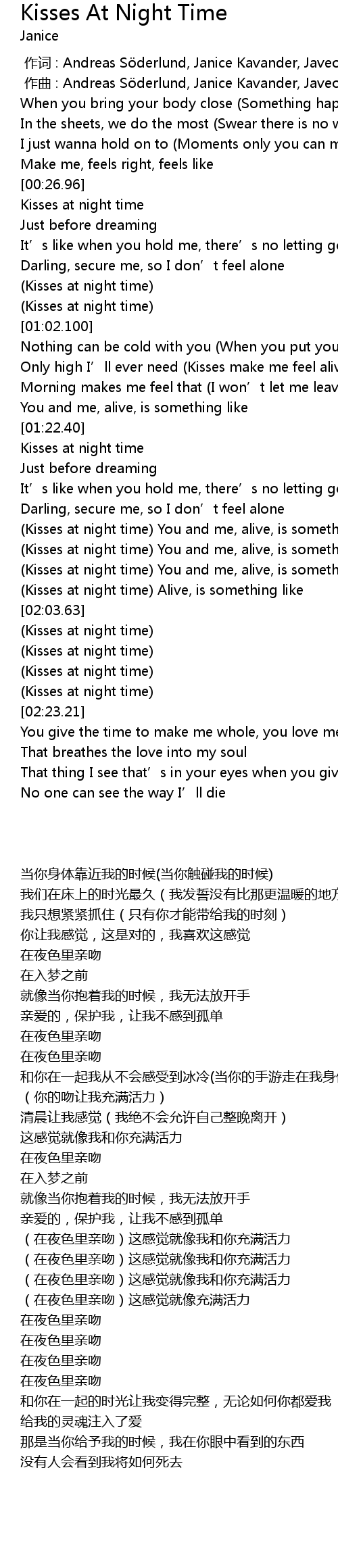 | [01:58.65] | Kisses at night time Alive, is something like |