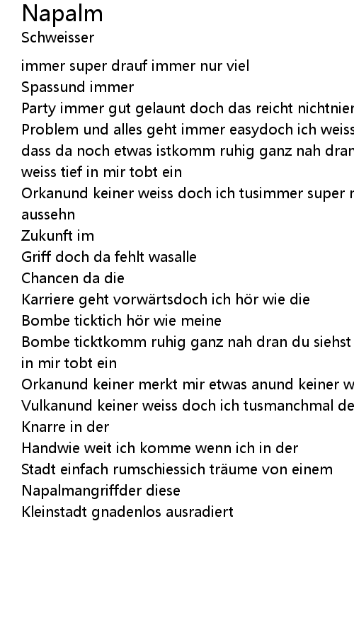 | Orkanund keiner merkt mir etwas anund keiner weiss in mir drin kocht ein | |