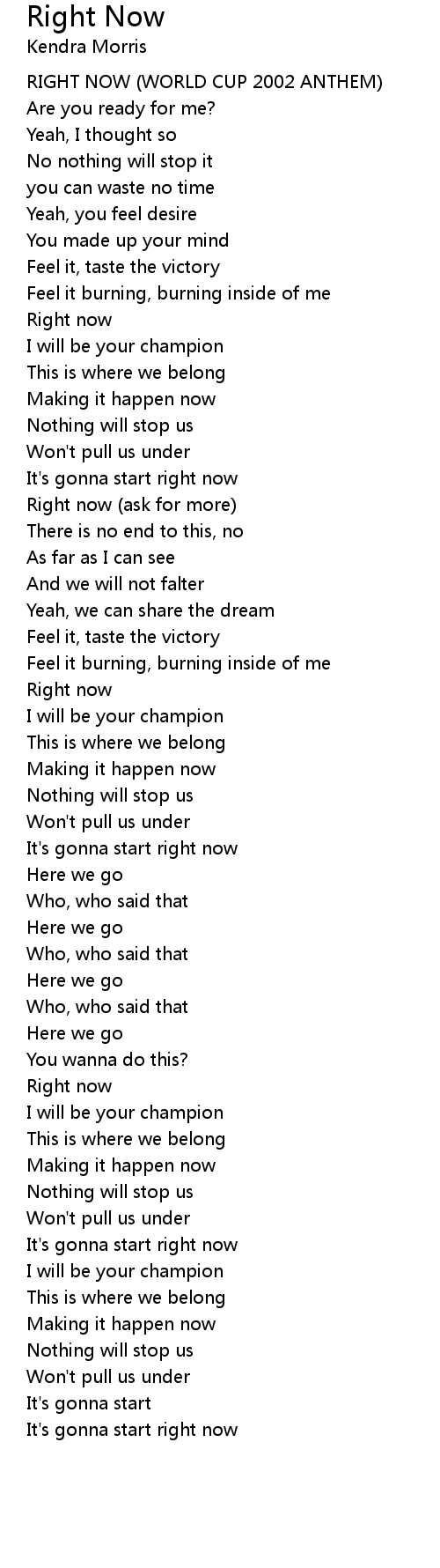 RIGHT NOW (WORLD CUP 2002 ANTHEM) |