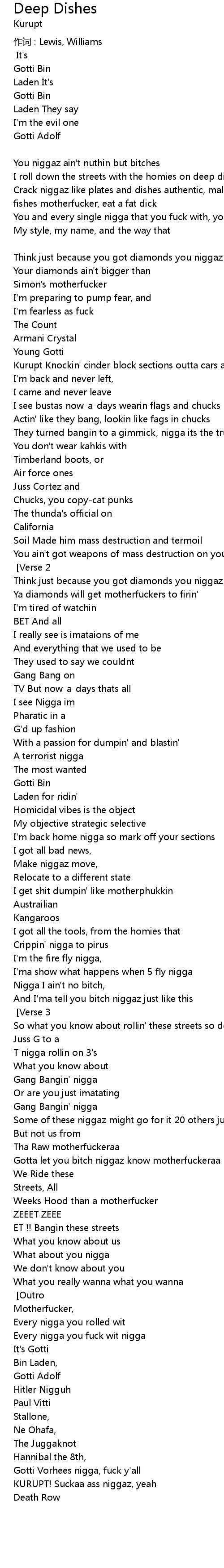 | Crack niggaz like plates and dishes authentic, malicious, vicious, piranha fishes motherfucker, eat a fat dick | |