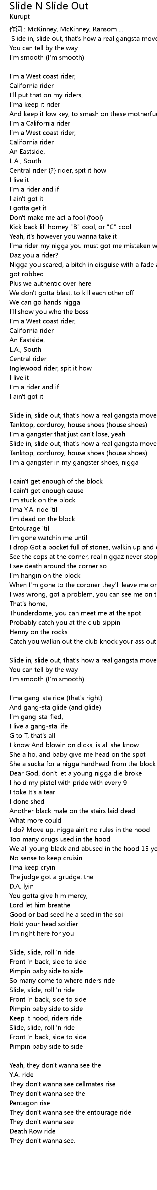 | Slide in, slide out, that' s how a real gangsta move.. Verse Two | |