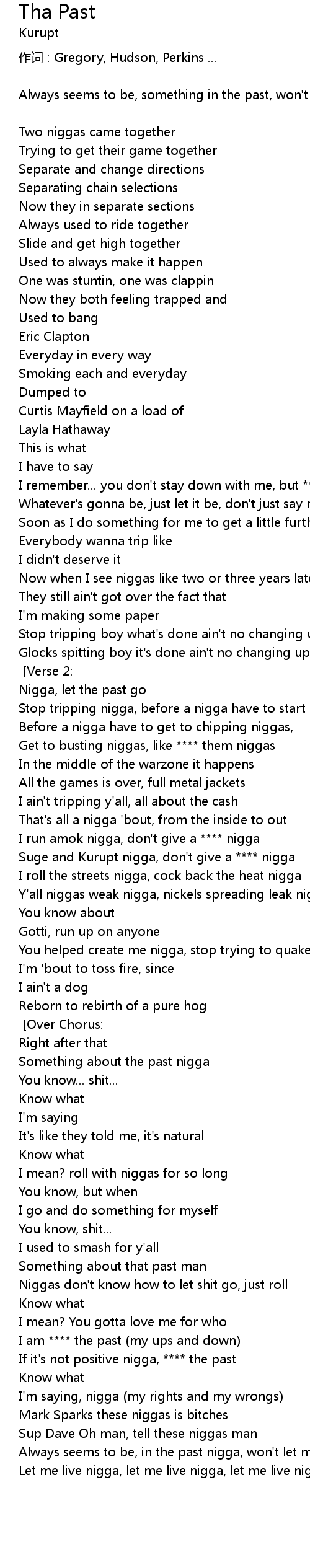 | **** the past nigga! [Chorus] [Over Chorus:] | |
