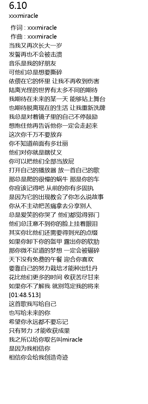 | [00:01.000] | zuo qu : xxxmiracle |