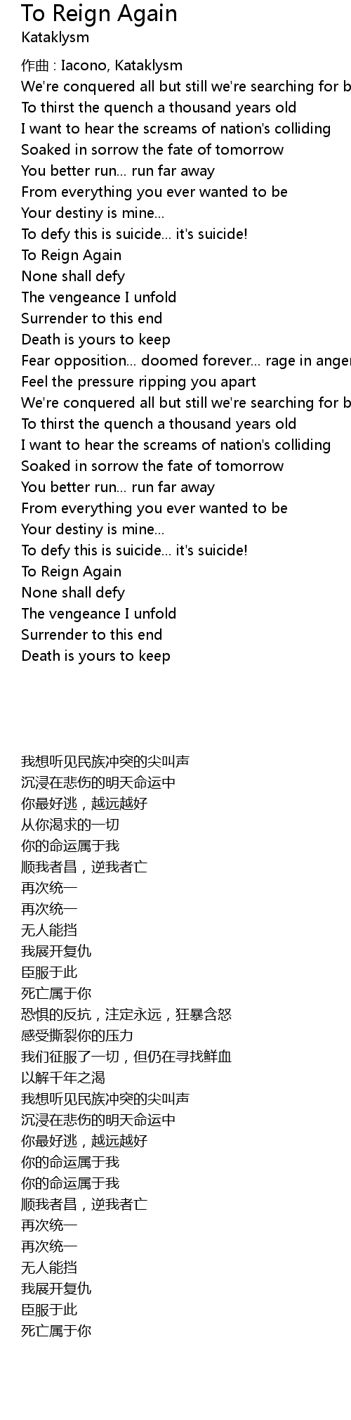 | 歌曲 | To Reign Again |