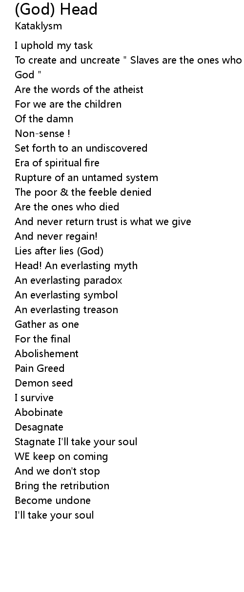 To create and uncreate " Slaves are the ones who fallow The myth of an unproven God " |
