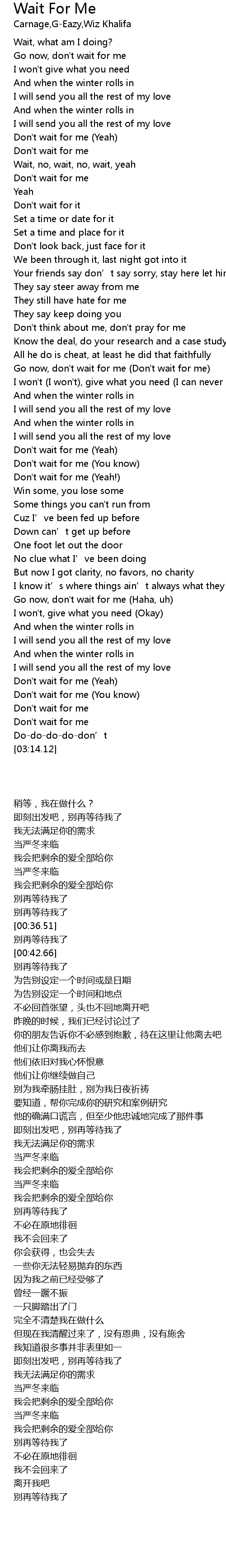 | [00:36.51] | Wait, no, wait, no, wait, yeah |