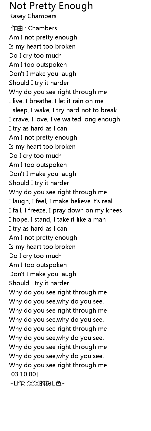 | [01:04.73] | Am I not pretty enough |