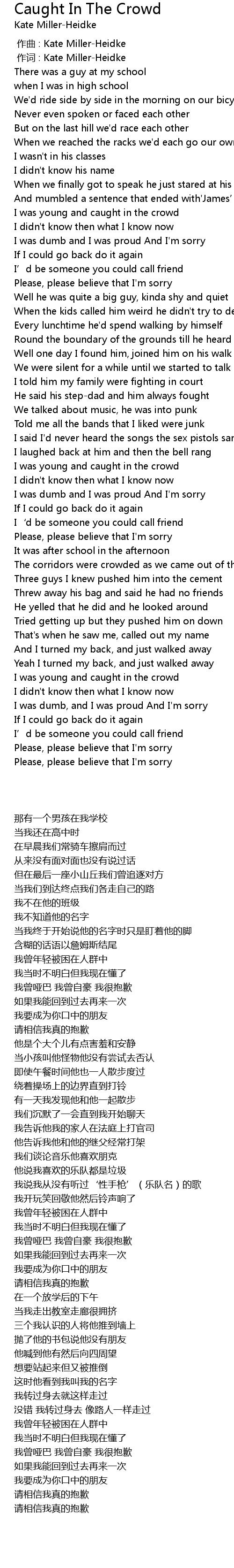 | 歌曲 | Caught In The Crowd |