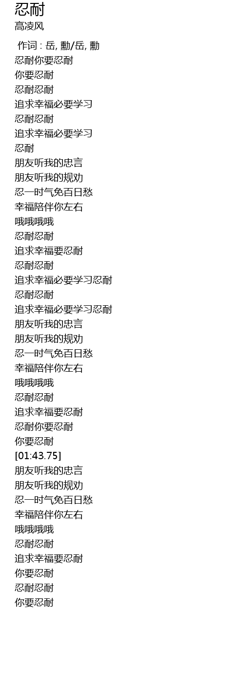| [01:37.26] | 你要忍耐 |