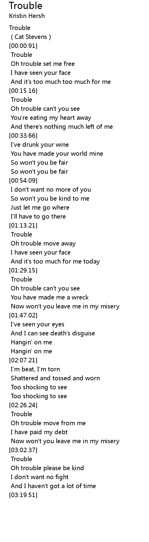 Oh trouble please be kind |