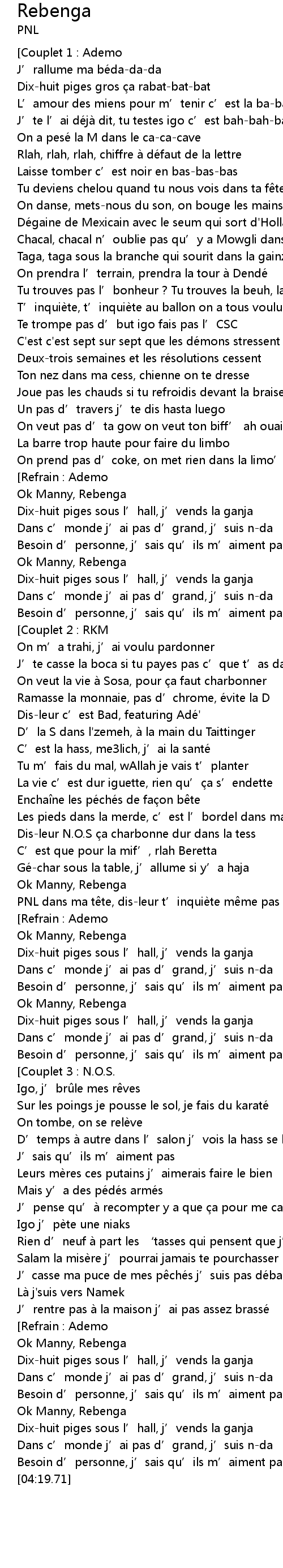 | [02:20.67] | PNL dans ma tête, dis-leur t’inquiète même pas |