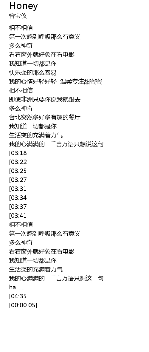 | [00:57] | 我的心情好轻好轻 温柔专注甜蜜蜜 |