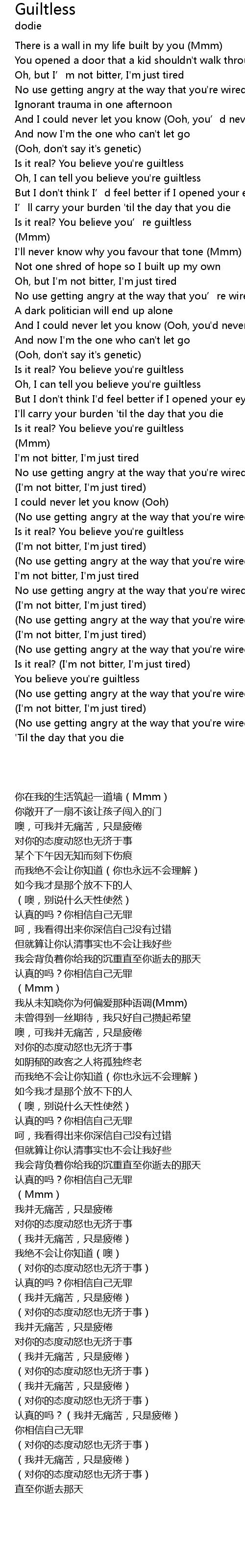 | [00:52.49] | Oh, I can tell you believe you're guiltless |