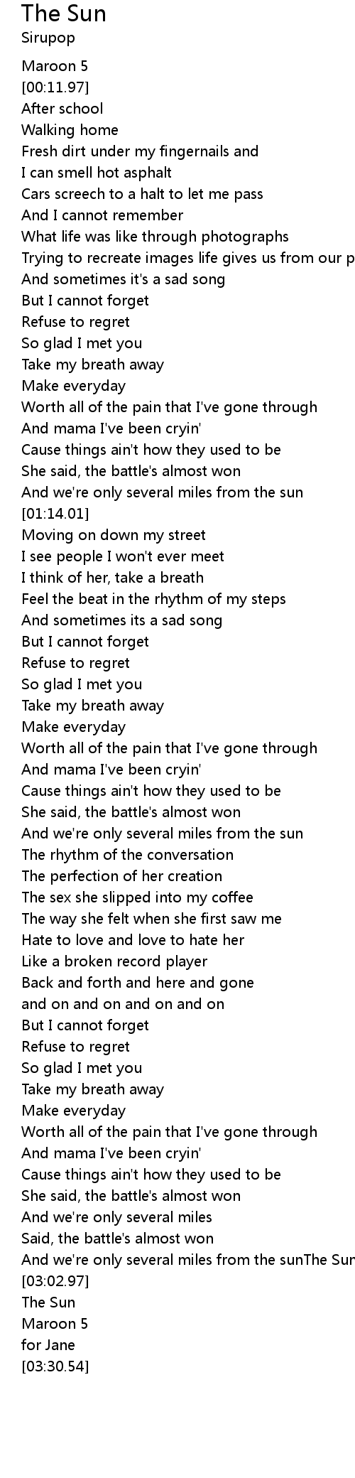 | [02:56.98] | And we're only several miles from the sunThe Sun |