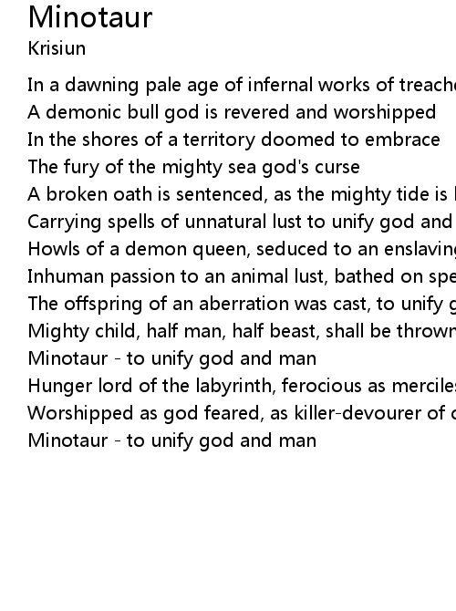 Mighty child, half man, half beast, shall be thrown into the twisting maze