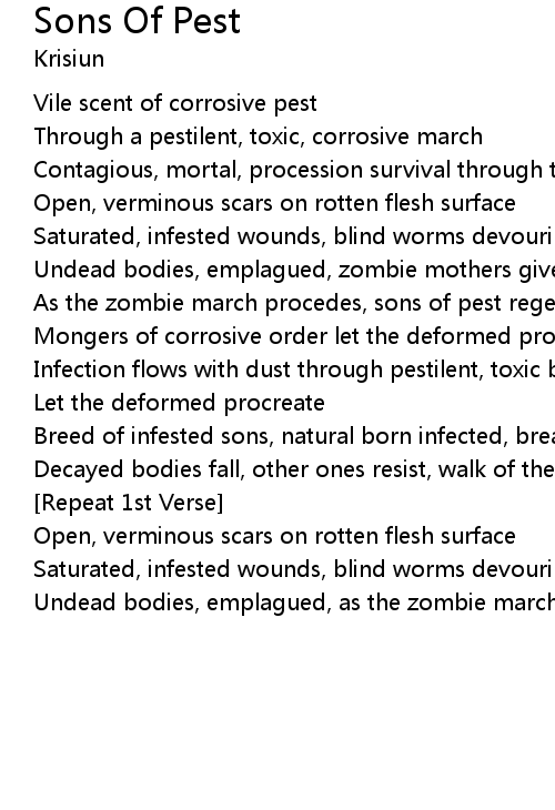 As the zombie march procedes, sons of pest regenerate |