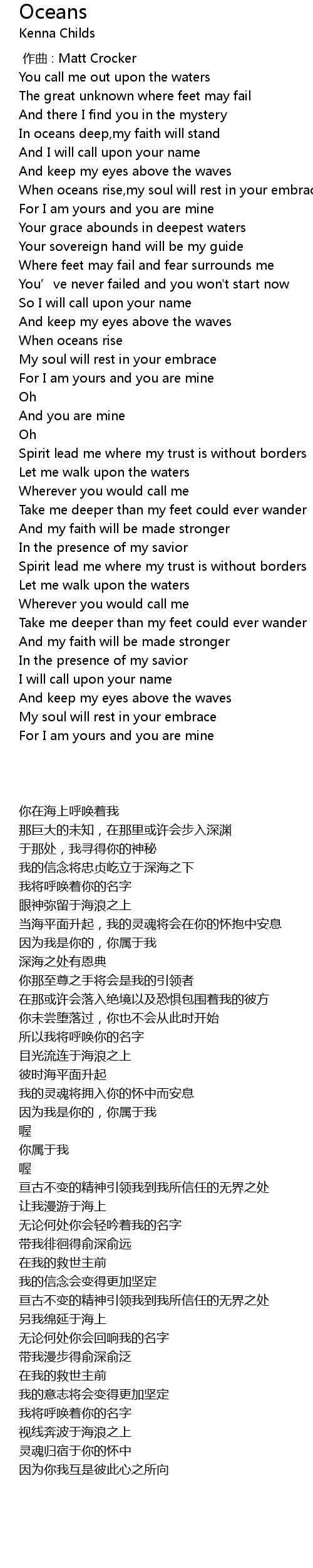| [00:33.435] | In oceans deep, my faith will stand |