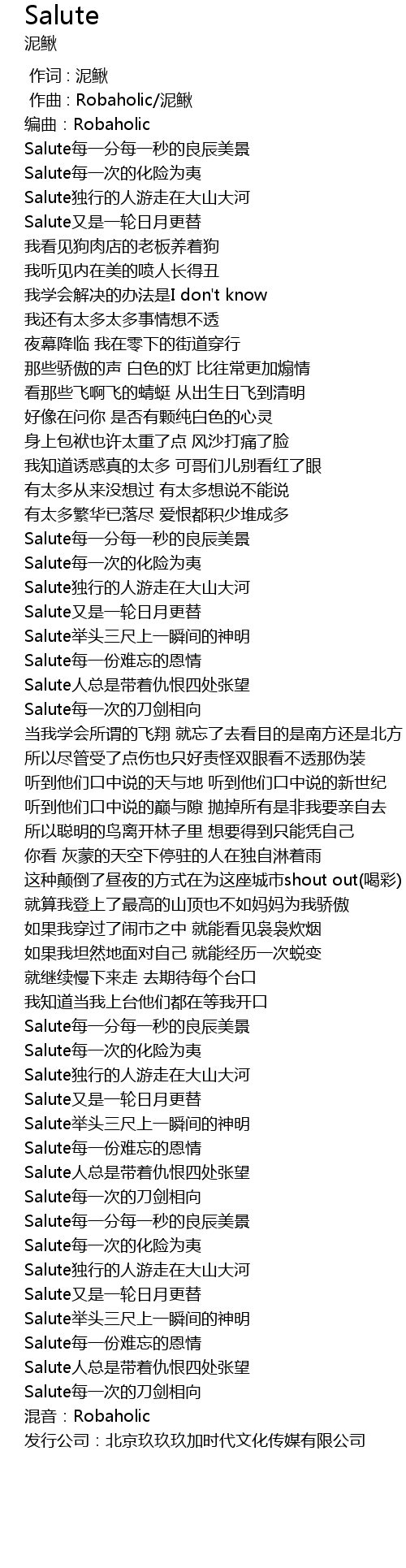 | [03:01.28] | Salute独行的人游走在大山大河 |