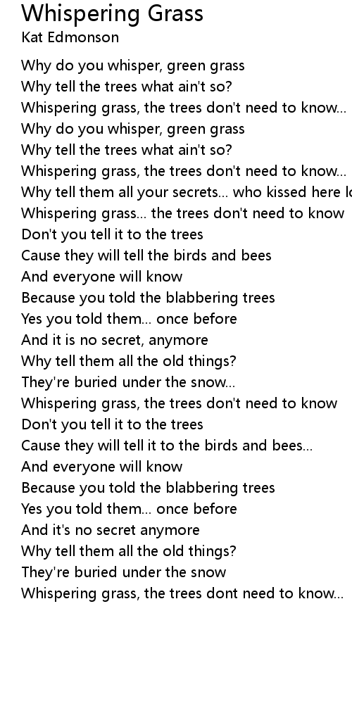 Whispering grass, the trees don't need to know... |