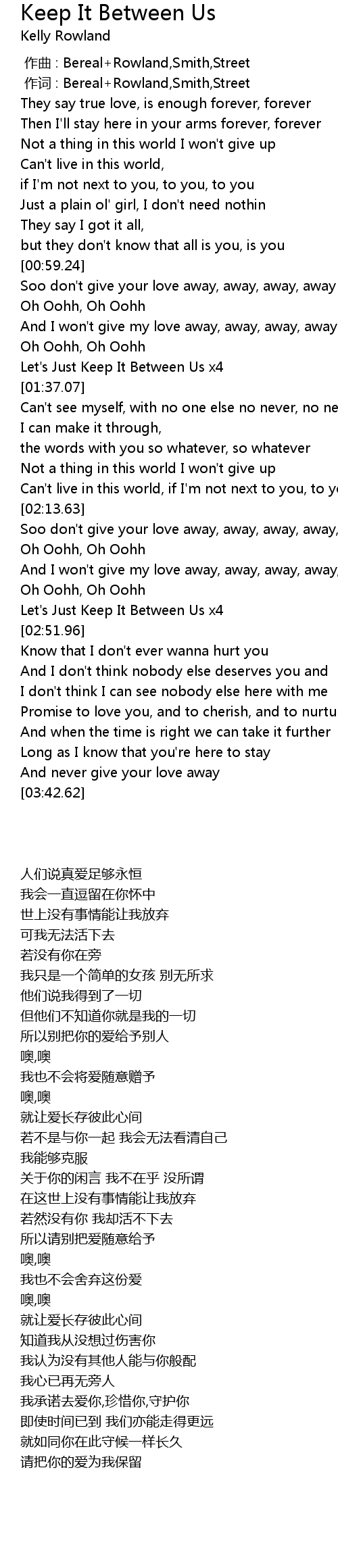 | [02:38.31] | Let' s Just Keep It Between Us x4 |