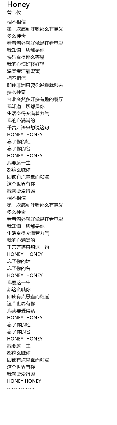 | [03:42.15] | zhè gè shì jiè yǒu nǐ |