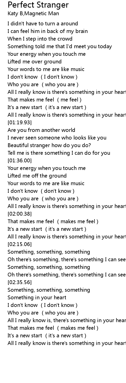 | [01:29.25] | Beautiful stranger how do you do? |