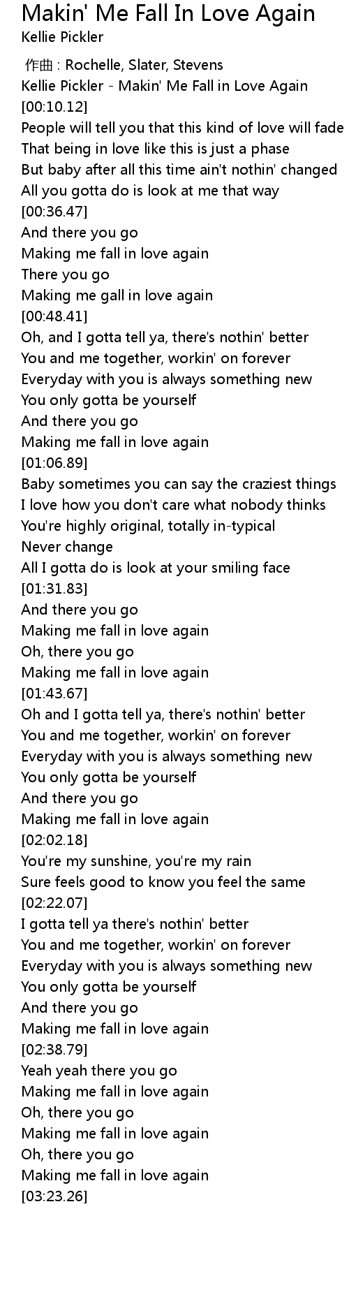 | [00:01.24] | Kellie Pickler - Makin' Me Fall in Love Again |