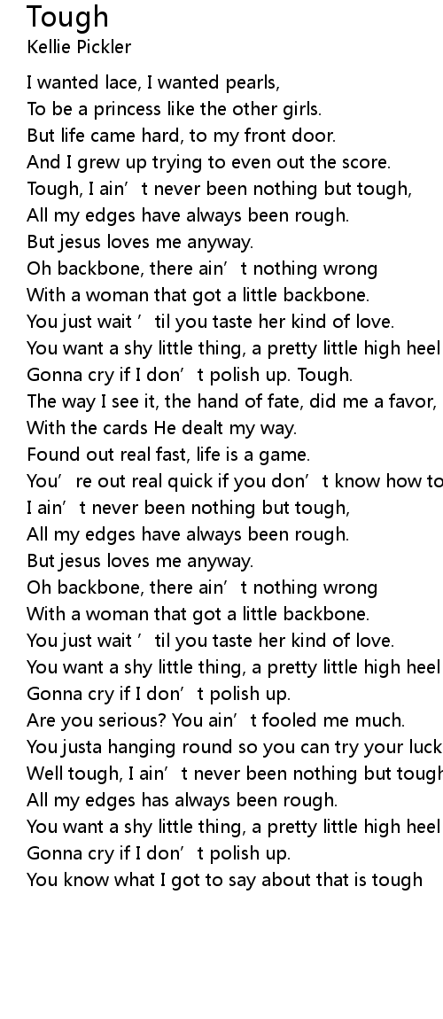 | [02:21.06] | Well tough, I ain' t never been nothing but tough, |