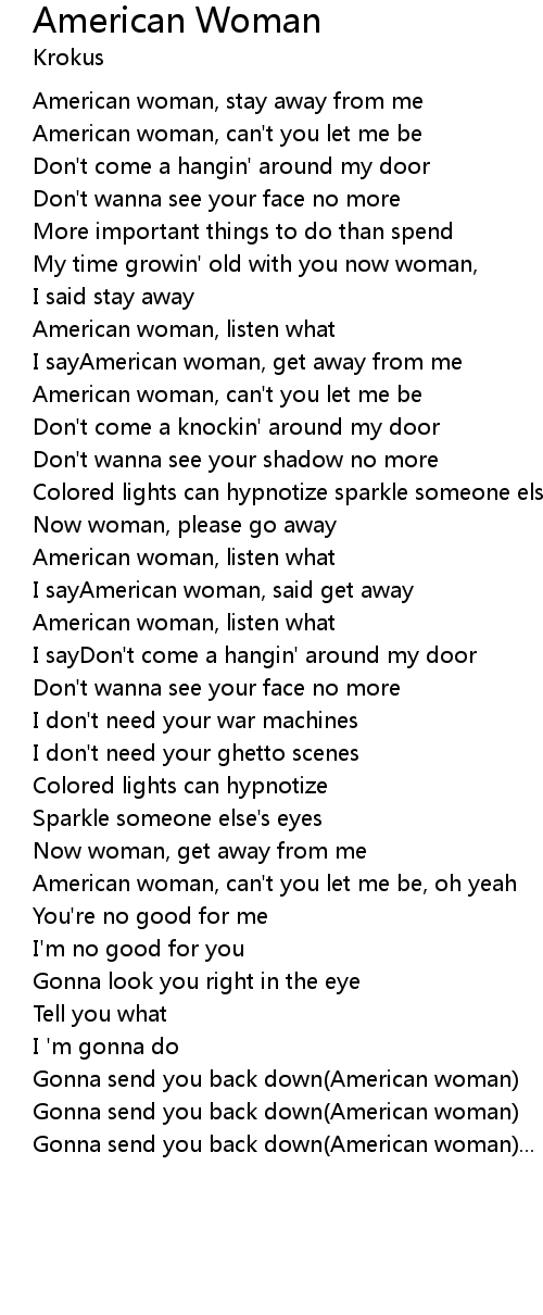 I sayAmerican woman, get away from me |