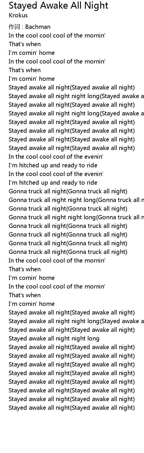 | Stayed awake all night night long(Stayed awake all night) | |