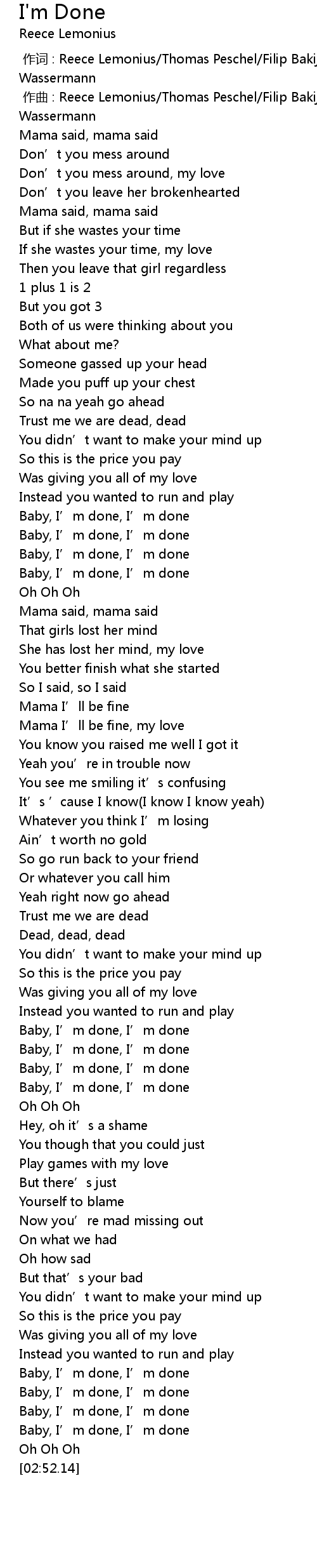 | [02:43.27] | Baby, I’m done, I’m done |