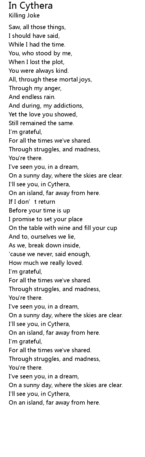 | I' ll see you, in Cythera, | |
