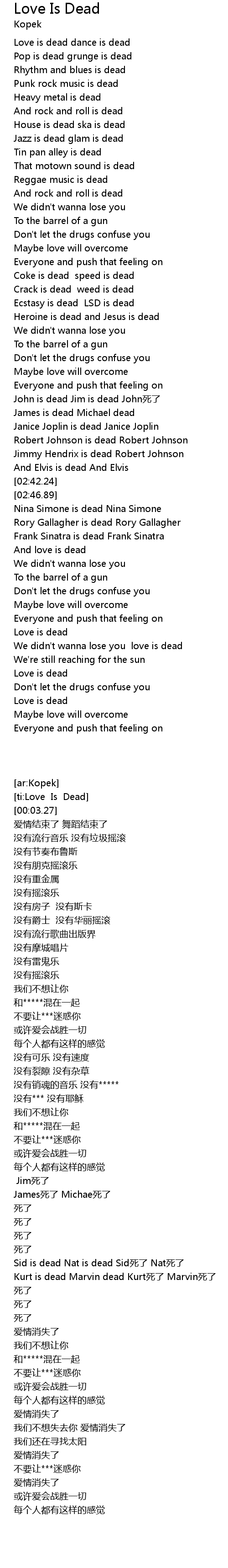 | [03:25.58] | Love is dead |