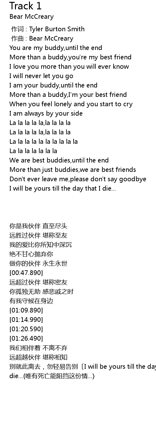| [00:04.596] | 你是我伙伴 直至尽头 |