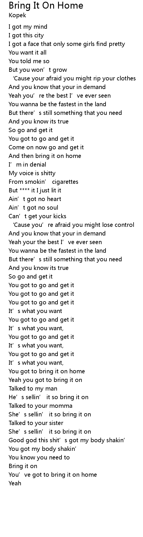 | 歌曲 | Bring It On Home |