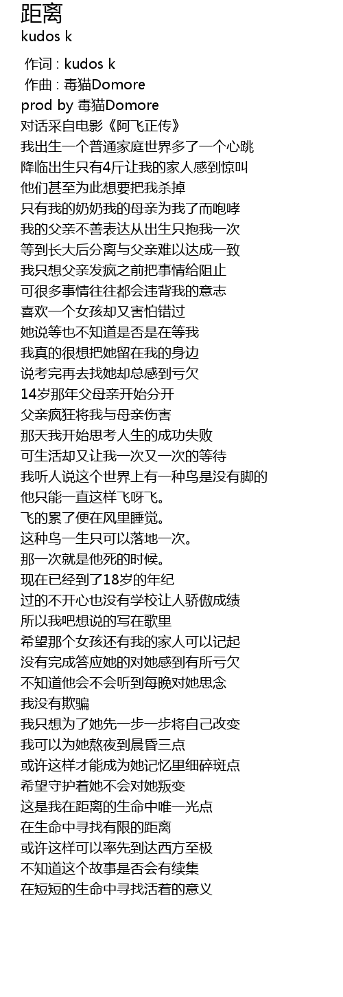 | [01:53.821] | 在生命中寻找有限的距离 |
