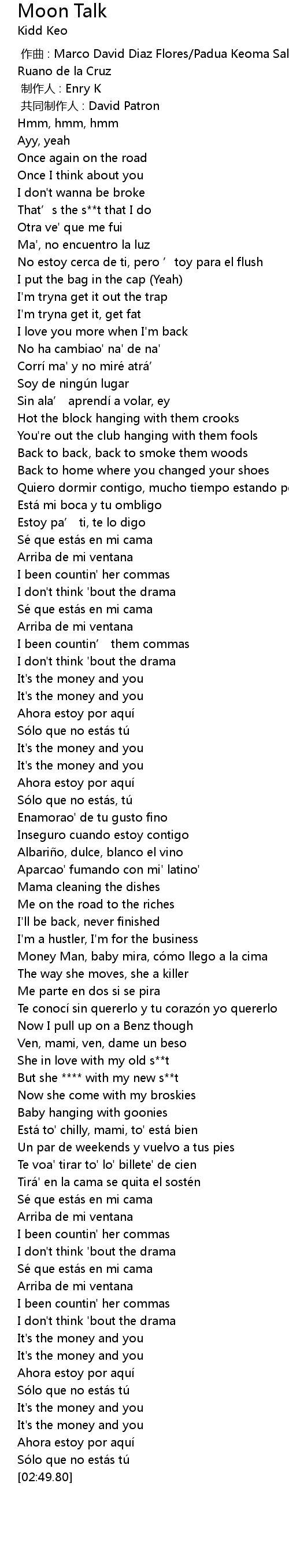 | [01:47.47] | Money Man, baby mira, có mo llego a la cima |