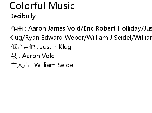 | [00:00.00-1] | 作曲 : Aaron James Vold/Eric Robert Holliday/Justin Donald Klug/Ryan Edward Weber/William J Seidel/William Kenneth Siebert |