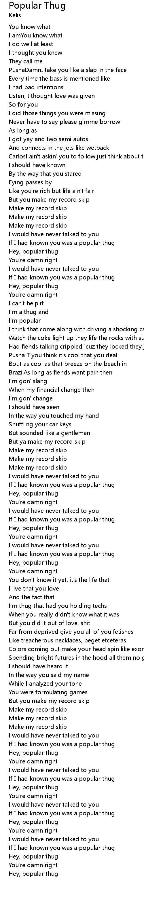 If I had known you was a popular thug