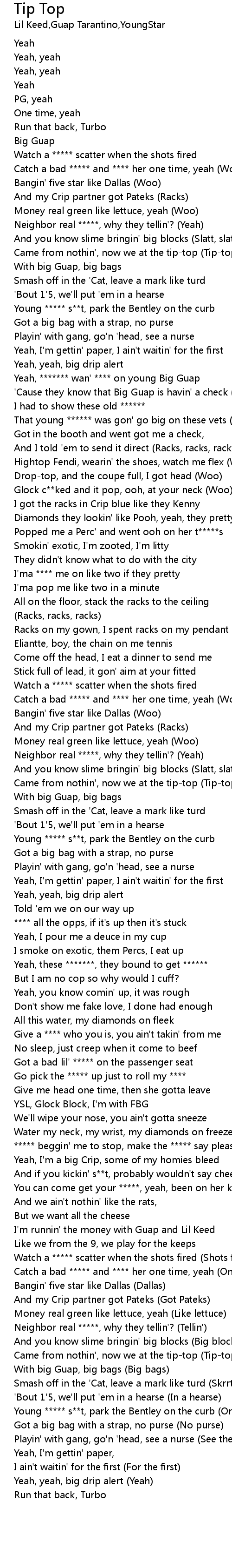 Came from nothin', now we at the tip-top (Tip-top) |