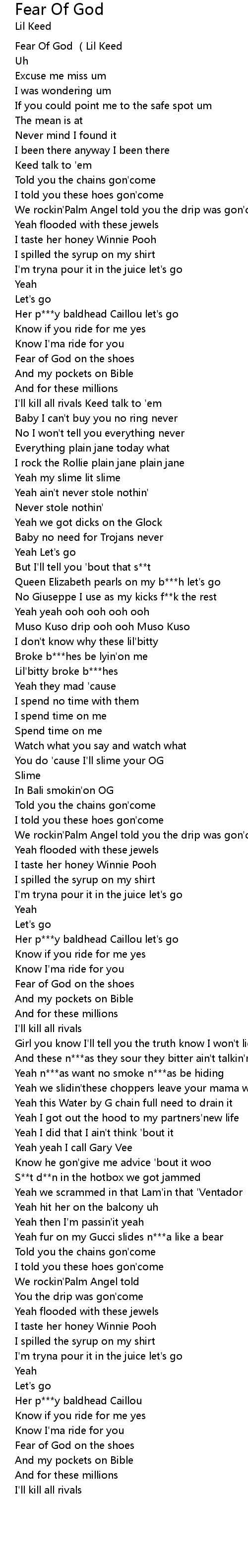 | [00:00.218] | Fear Of God (Lil Keed |