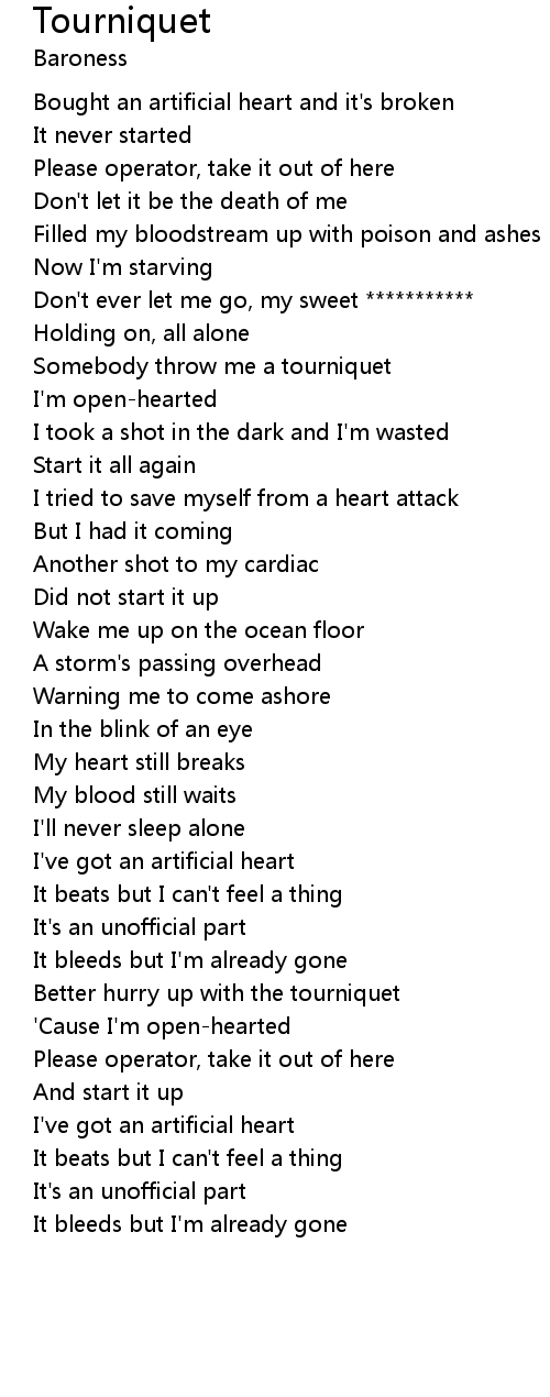 Somebody throw me a tourniquet |
