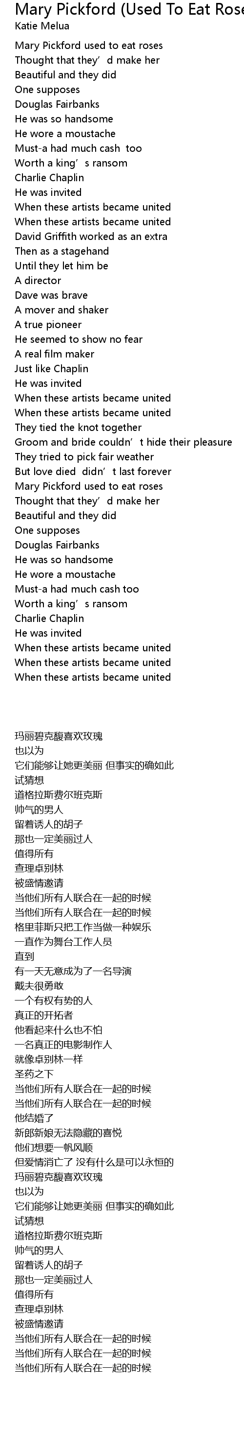| 歌曲 | Mary Pickford (Used To Eat Roses) |