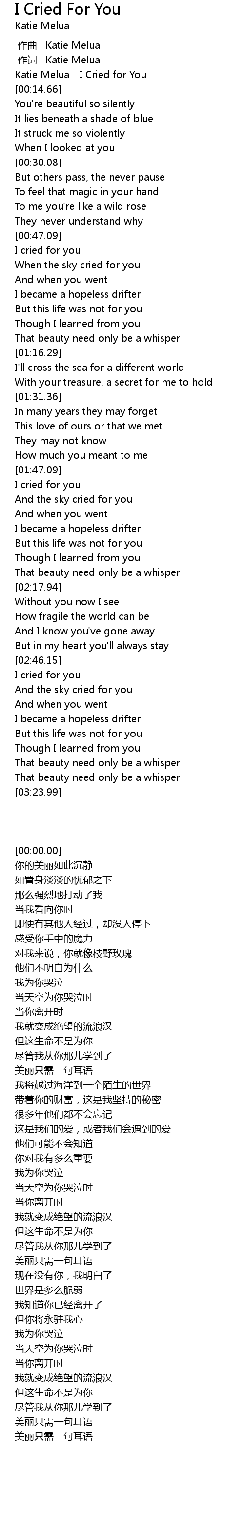 | [00:00.00] | Katie Melua - I Cried for You |
