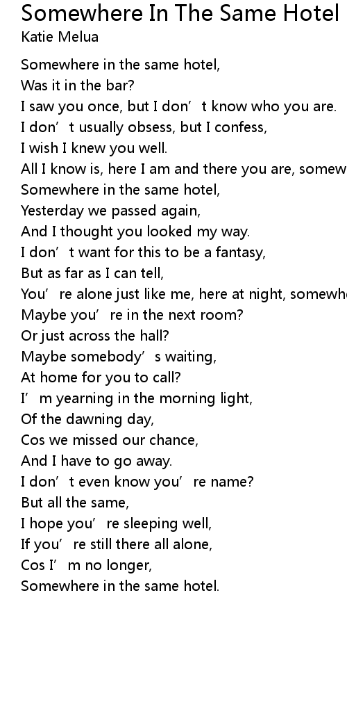 | You’re alone just like me, here at night, somewhere in the same hotel. | |