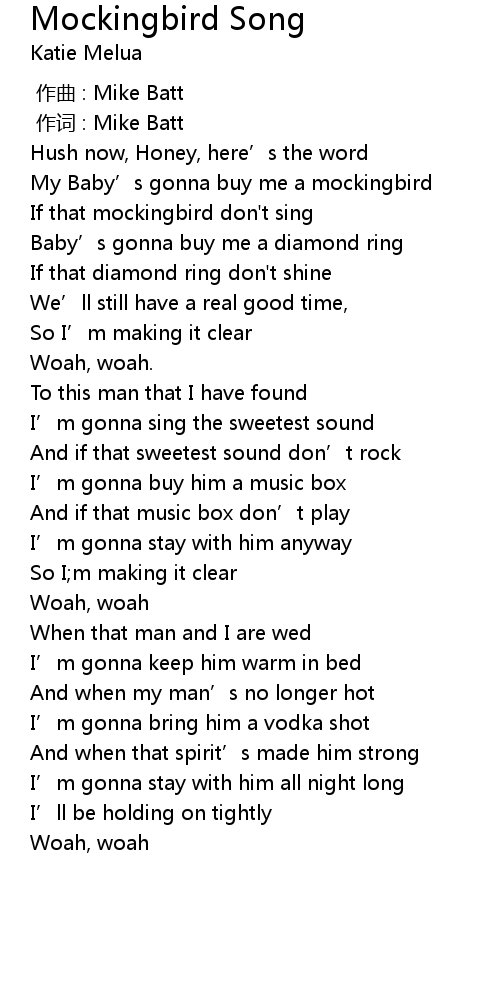 | 歌曲 | Mockingbird Song |