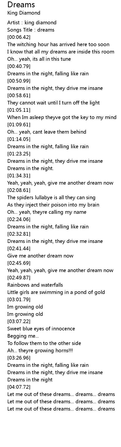 | [00:02.98] | Songs Title: dreams |